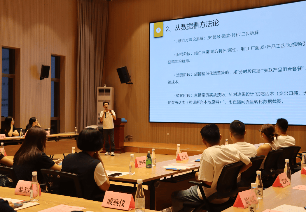 “短视频内容要接地气、有温度,才能真正打动人心。”“直播带货的关键不是硬推销,而是与观众建立信任关系。”本次沙龙特邀本地青年电商企业鲸鱼传媒直播团队从自身创业经历出发,围绕电商基础知识、店铺精细化运营、高效营销策略等核心内容,讲授了选品话术、互动技巧及流量转化等实战技能,让在场青年直观感受直播带货的全过程,活动还结合“直播助农”“短视频引流”等热门案例,展示电商技术如何融入并激活乡村发展。
