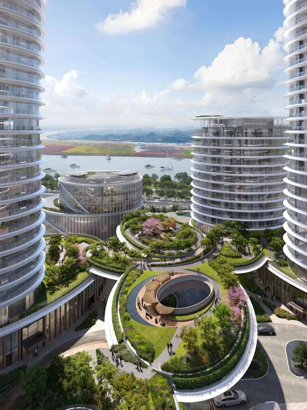 在当下的珠江之畔,鹏瑞1号为建筑领域中自然与人工的交融,作出了全新且深刻的诠释。其设计灵感源自历经千年岁月的珠江水纹,在此基础上,精心打造出广州首座弧形立面建筑群。该建筑群宛如一组庄重而宏大的公共雕塑群落,傲然屹立于珠江之滨,以独特的建筑语言,诉说着自然元素与人工巧思的和谐共鸣,展现出在建筑创作中对自然与人工平衡关系的深入探索与卓越实践 。