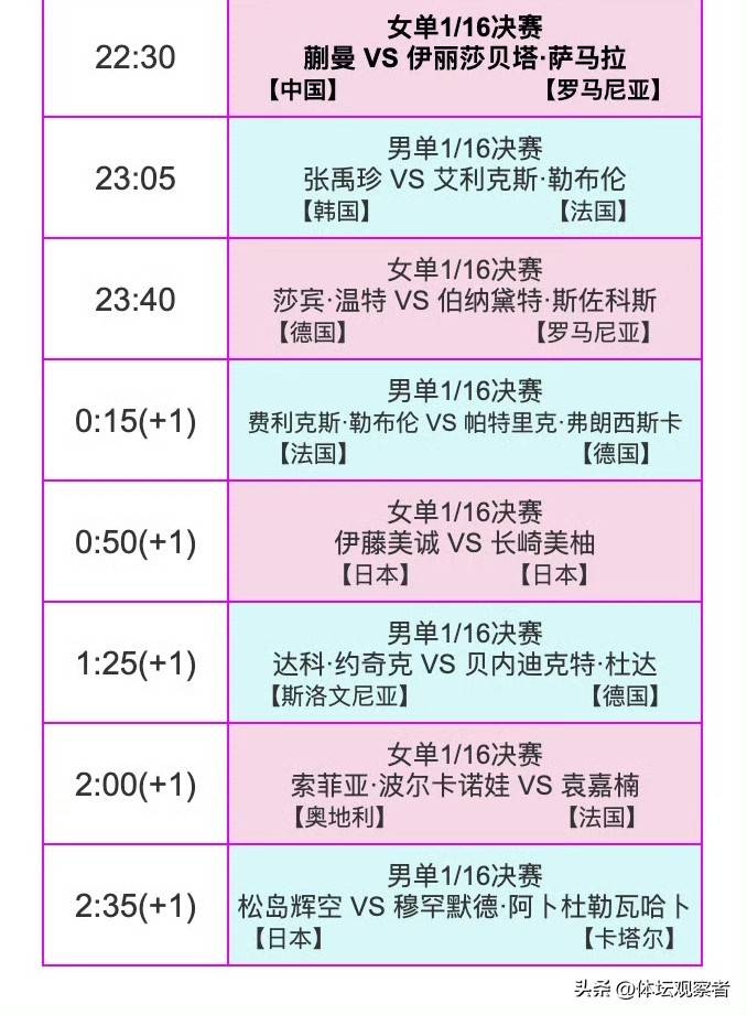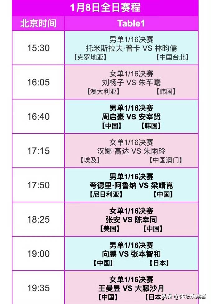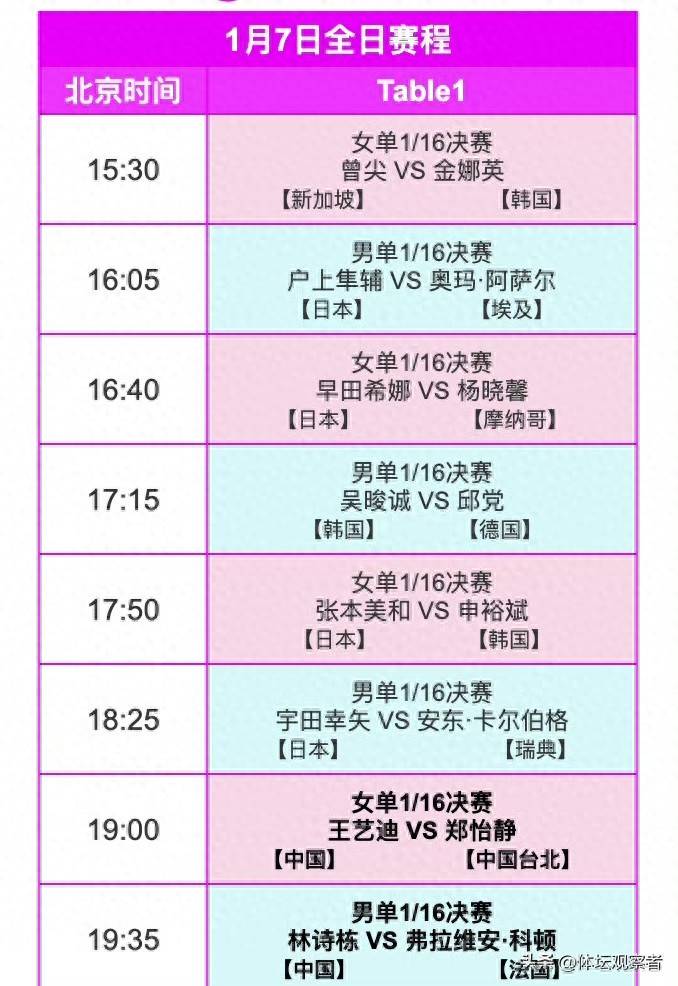 第二个比赛日将有7名国乒队员登场,上半场周启豪、梁靖崑、陈幸同、向鹏、王曼昱将会接连登场。这其中向鹏将对阵张本智和,王曼昱对阵大藤沙月。在下半场陈熠和陈垣宇将会出战,分别对阵高桥布鲁娜与林德。