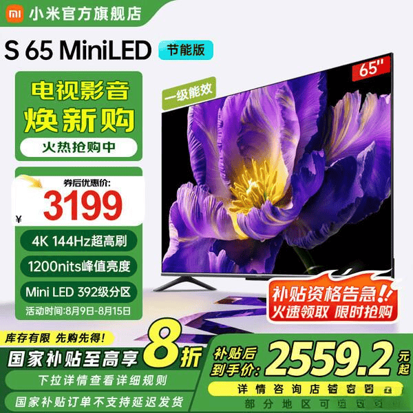 Mini LED背光技术:小米S65 Mini LED采用了392个独立背光分区,画面的明暗控制极为精准,亮的地方更亮,暗的地方更深邃,细节表现丰富。无论是看电影还是打游戏,光影层次分明,色彩鲜活,整体体验相当不错。