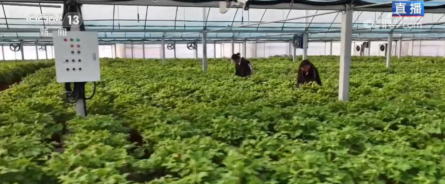 和已经盛开的花不一样,这片牡丹还都是花骨朵。这是因为牡丹的花期一般在4月份,想要让它在冬天开放,就需要通过控制温度和湿度来进行催花。温室大棚就是为了给它模拟出春天的环境,一般安装有热泵,可以把棚内白天的温度控制在20℃左右,等花在大棚里生长5060天,花苞长到三四公分,就能上市和消费者见面了。