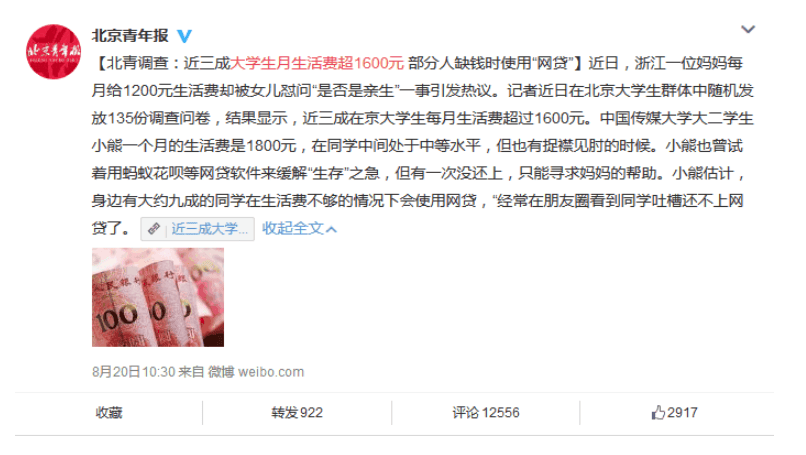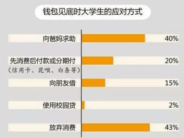 2017年麦可思曾做过调查,结果显示——“39%的学生身边有人使用校园贷。”因虚荣消费和无度消费导致的盲目烧钱,曾让信用卡、花呗、白条、裸贷一度在大学生群体里快速泛滥,让这群天之骄子还没走出校门就背负上沉重的负债。好在国家及时整治,近些年大学生网贷恶相的情况才得以遏制。