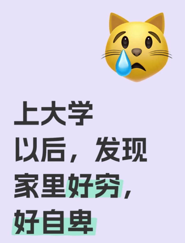 “真的emo了,刚和妈妈打完电话要钱,每次要钱都像乞讨,还要被审问钱花哪儿了,线块。在我妈看来,这已经是一笔巨款了,但跟我同学们比起来,我简直活得像个‘低保户’!”