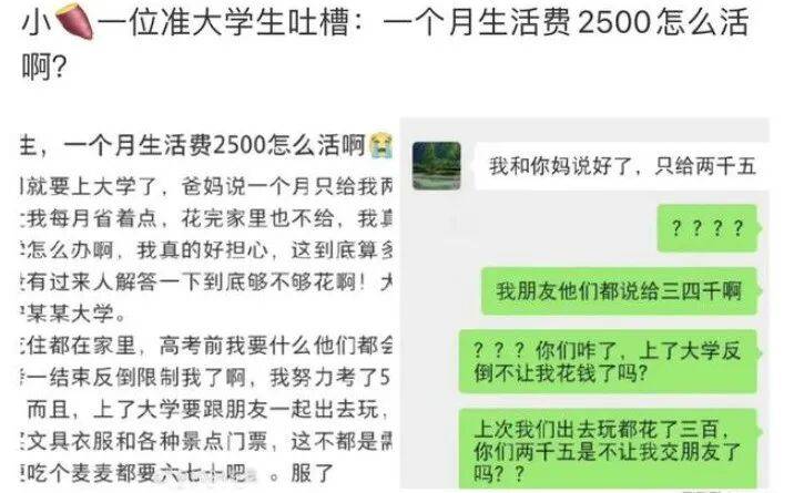类似的吐槽在网上随处可见,常在社交平台抱怨生活费“勉强生存”的大学生,不会知道,父母可能为这2500元,忍受着最难言的职场委屈,只为了让他们在人前活得更轻松点,为他们的未来积攒更多的底气。