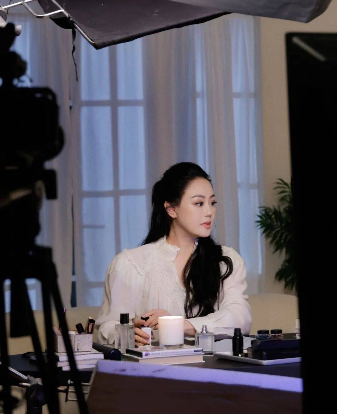 章小蕙在自己社媒上分享直播准备花絮图,并配文:“成为你自己,玫瑰是玫瑰。”
