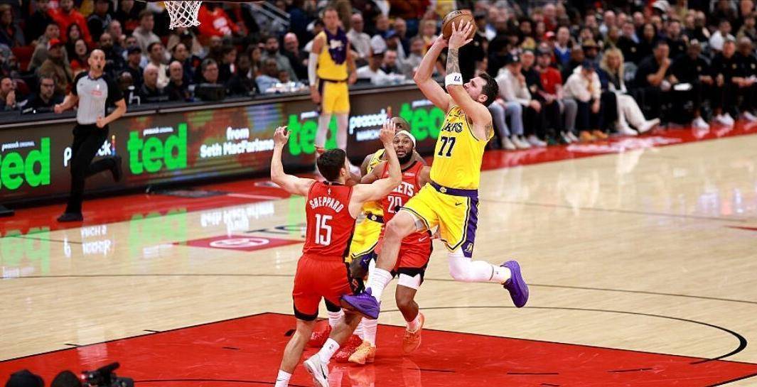 火箭拿他一点办法都没有,包夹他就传球,单防他就用各种后撤步、抛投和身体对抗把球放进篮筐。 比赛最后时刻,当火箭把分差追到只差3分时,正是东契奇连续命中关键球,帮湖人稳住了局面。