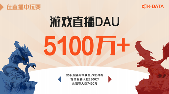 腾讯游戏与快手的紧密联动,不仅使此次发布会亮点迭出,也是对游戏直播行业的积极探索。快手作为DAU3亿+的国民级短视频直播平台,快手游戏直播业务是其当前重点发力的内容生态。根据快手大数据研究院发布的《2019快手直播海生态报告》显示,截止2019年12月,快手游戏直播DAU已突破5100万,短视频DAU突破7700万。快手不仅能够源源不断的培养“草根”标签的游戏直播领域主播、网红,也能通过这一优势特征吸引众多机构入驻,以此形成的KOL效应,能够为快手游戏生态不断导入用户,推动快手游戏业务的正向循环。
