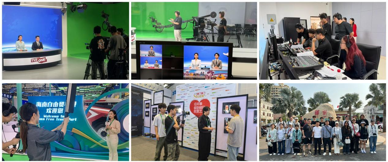 本次特别节目以“潮起回望”“潮涌新章”“潮兴未来”三大篇章展开。第一篇章通过数据短片与媒体人、志愿者访谈,回顾消博会五年成长历程与自贸港发展足迹。第二篇章以“寻宝通关”形式深入展会现场,双语记者团队探访全球好物、国潮新品与海南本土特色,穿插参展商、非遗传承人采访,多维度呈现封关运作开局之年的消费活力。第三篇章聚焦科技前沿,学生“AI体验官”亲测智能产品,街采短片收集公众未来愿景,压轴的AIGC短片更以创意影像生动呈现了青年学子对海南自贸港未来发展的美好畅想。整场节目由学生主导全流程制作,教师团队全程指导,充分展现了传媒学子过硬的专业素养与青春担当。