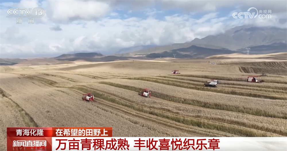 金秋时节,在青海省海东市化隆县,9.57万亩青稞陆续成熟进入收割期,田野间一派丰收的喜人景象。